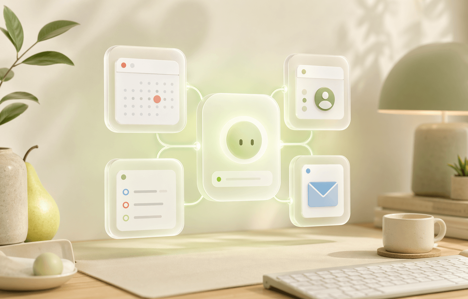 Pear sits between the model and your Apple account so the assistant can reason, read, and write against live context instead of stale summaries or brittle local glue.